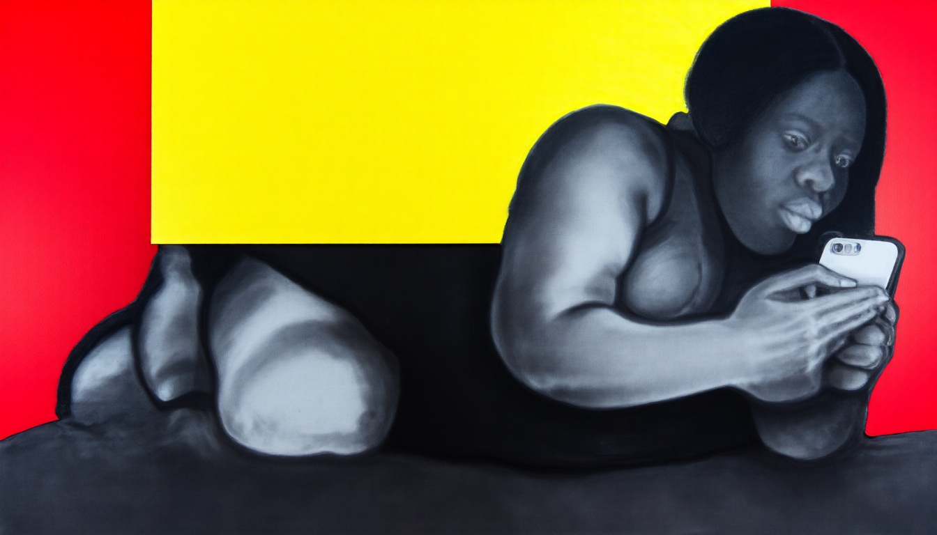 Tableau réalisé d’après une image générée à partir de la description du tableau Que Calor! par une IA* entraînée avec les photographies des tableaux d’EDEN Stories · Saison 4 · NO SIGNAL.
